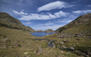 Du refuge, partir vers l'est sur le GR et rejoindre le col de LLuri puis passer le long de l'étang de Romedo Dalt (supérieur, mini passage équipé) et poursuivre jusqu'à l'étang de Romedo Baix (inférieur, 1h20 depuis le refuge). On rejoint une piste à suivre puis continuer sur le sentier plein nord qui va longer l'étang de Romedo Baix pour s'enfoncer dans le vallon de Romedo. Plus loin, obliquer à l'est pour une montée bien raide jusqu'au Port de l'Artigue, frontière avec l'Ariège (2h45 depuis le refuge).